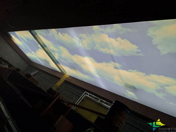 熱烈祝賀我公司濰坊慶鵬水會洗浴會所浴池藍天白云軟膜防潮吊頂順利完工,慶鵬洗浴會所軟膜防潮吊頂采用我公司精印藍天白云系列,內(nèi)搭燈光,效果十分漂亮,感謝客戶對樂創(chuàng)品牌產(chǎn)品的信任與支持。 安裝效果如下圖: